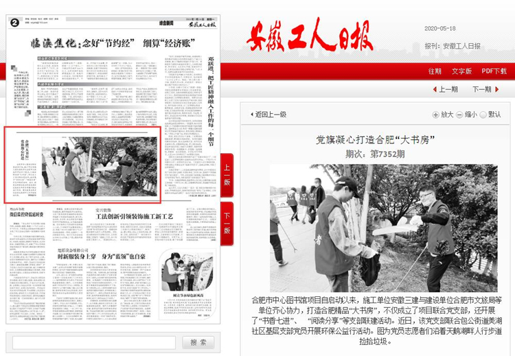 安徽工人日報——黨旗凝心打造合肥“大書房” 發(fā)布時間:2020-05-18 來源:安徽工人日報 撰稿人:李艷麗 瀏覽次數(shù):20398 報道鏈接:http://epaper.xunbaoah.com/index/article/articleinfo?doc_id=3334