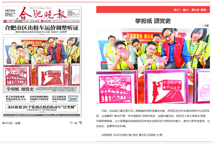 安徽日報、合肥晚報、安徽日報公眾號——學(xué)剪紙頌黨史