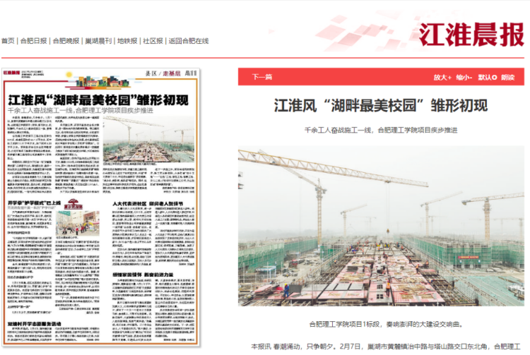 媒體聚焦丨合肥晚報、江淮晨報先后報道公司承建的合肥理工學(xué)院1標(biāo)段項目最新進(jìn)展