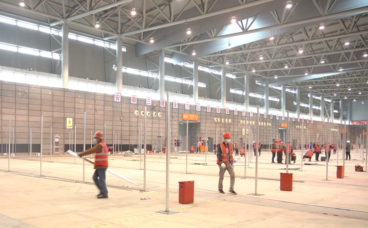 寧可備而不用,不可用時(shí)無備。3月25日,根據(jù)國家和省疫防要求,合肥市決定立即改造市會展中心一期項(xiàng)目,盡快建設(shè)擁有2000張床位規(guī)模的方艙醫(yī)院。作為屢屢圓滿完成抗疫緊急建設(shè)任務(wù)的安徽三建成為合肥市方艙醫(yī)院建設(shè)的主力軍,承擔(dān)濱湖會展中心10號館的改建任務(wù)。