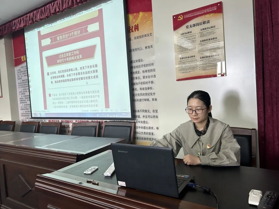 為深入學(xué)習(xí)貫徹黨的二十大精神,在機關(guān)迅速掀起學(xué)習(xí)貫徹的熱潮,10月31日,總支組織“云端黨課”學(xué)習(xí)宣貫黨的二十大精神。黨支部副書記陽海英以《踔厲奮發(fā),勇毅前行——聚焦中國共產(chǎn)黨第二十次代表大會》為主題,詳細(xì)解讀二十大報告提出的十五個部分的內(nèi)容,結(jié)合機關(guān)實際工作對二十大報告進行了深入淺出的解讀,認(rèn)真研讀黨的二十大報告和黨章,領(lǐng)悟黨的二十大提出的新思想、新論斷,深刻領(lǐng)會報告精神實質(zhì)。
