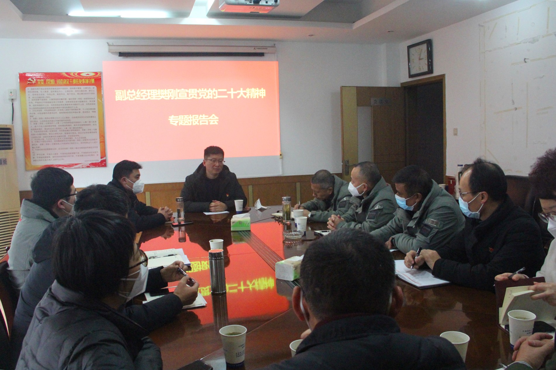 宣講會上,樊剛緊緊圍繞黨的二十大精神實質(zhì),重點從深刻領(lǐng)會黨的二十大的重大意義、黨的二十大的主題、新時代十年的偉大變革、馬克思主義中國化時代化新境界、中國式現(xiàn)代化的中國特色、堅持團(tuán)結(jié)奮斗等方面進(jìn)行了系統(tǒng)深入宣講。樊剛強(qiáng)調(diào),各參會單位要把學(xué)習(xí)宣傳貫徹黨的二十大精神作為當(dāng)前和今后一個時期的首要政治任務(wù),與抓好當(dāng)前主要工作和謀劃今后重點工作結(jié)合起來,緊密圍繞公司補短板、控風(fēng)險、拓市場、鑄品牌的發(fā)展方針,找準(zhǔn)發(fā)展方向,堅持問題導(dǎo)向,勇于攻堅克難,以實干實績?yōu)槠髽I(yè)高質(zhì)量發(fā)展做出更大貢獻(xiàn)。