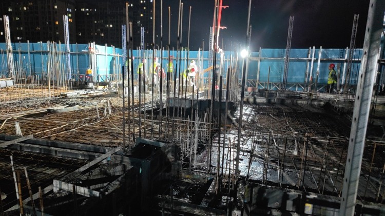 時代公館項目五號樓三層墻柱頂板混凝土澆筑夜間施工