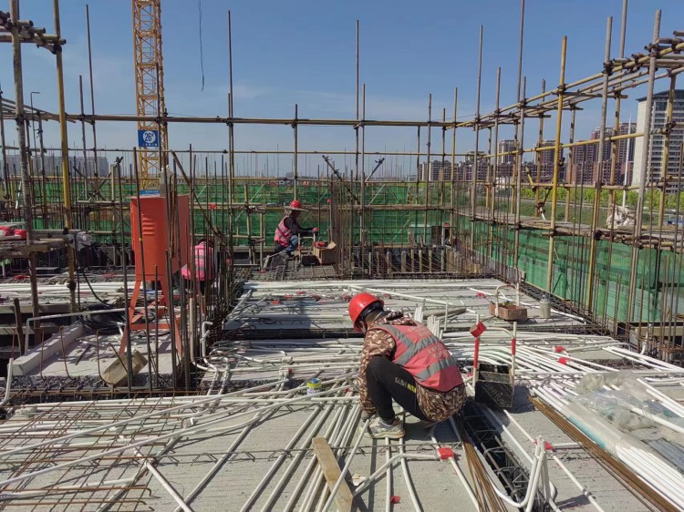 時代星河二期項目工人安裝預(yù)埋線管