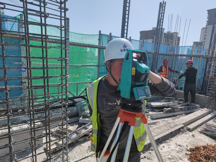 時代公館項目測量放線工常有路正在五號樓三層頂板測量放線