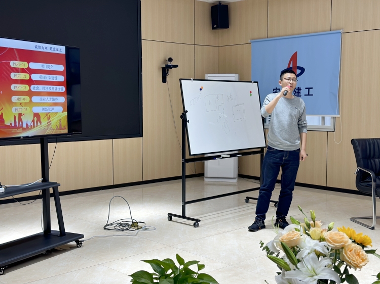 活動現(xiàn)場他們或坐或站,激烈的地方,有的用PPT翻頁筆比劃出“建設的宏偉藍圖”;有的用記號筆在寫字板上畫出“建設的局部細節(jié)”;他們用“標簽”狠狠貼在自己建設的工程項目上,不同視角介紹著EPCO、EPC、市政道路、公建、智能化廠房、房地產開發(fā)等不同模式及類型的項目,講出自己對于高質量發(fā)展的認識和體會。