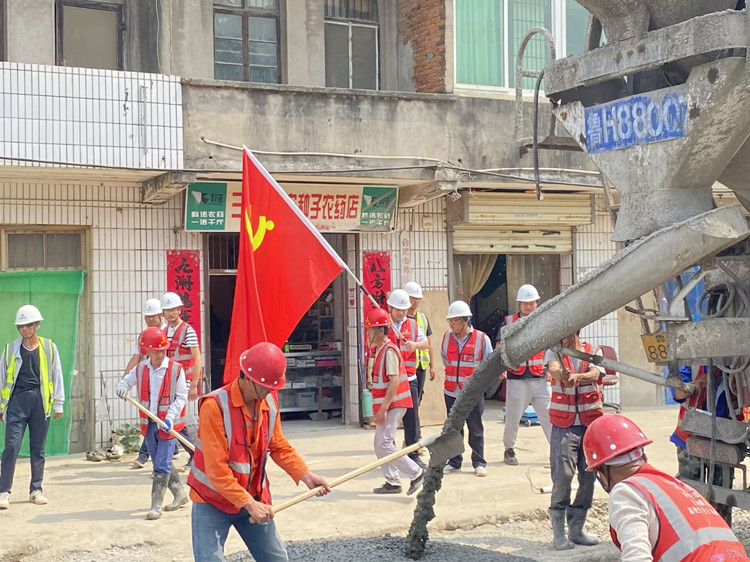 三十崗鄉(xiāng)三豐路集鎮(zhèn)段全長240m,原為4米寬村村通水泥路,因年久失修,路面有局部坑洼,給當?shù)氐拇迕裆畛鲂袔硪欢ǖ牟槐?,此條道路也是項目土方外運的必經(jīng)之路。為感謝當?shù)卮迕駥椖拷ㄔO(shè)的支持,今年6月,八公司清瀾苑項目臨時黨支部主動承擔起該條道路的修復義務,并根據(jù)現(xiàn)場實際情況制定了針對性強、可實施性高的道路修復施工方案。在修復過程中,項目黨員干部和多名經(jīng)驗豐富的一線職工頂住炎熱、突擊搶修,為道路品質(zhì)提供了有力保障。村民們?yōu)楦兄x搶修組,紛紛拿來礦泉水、西瓜等。