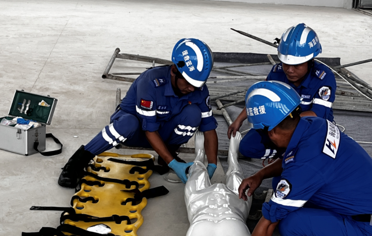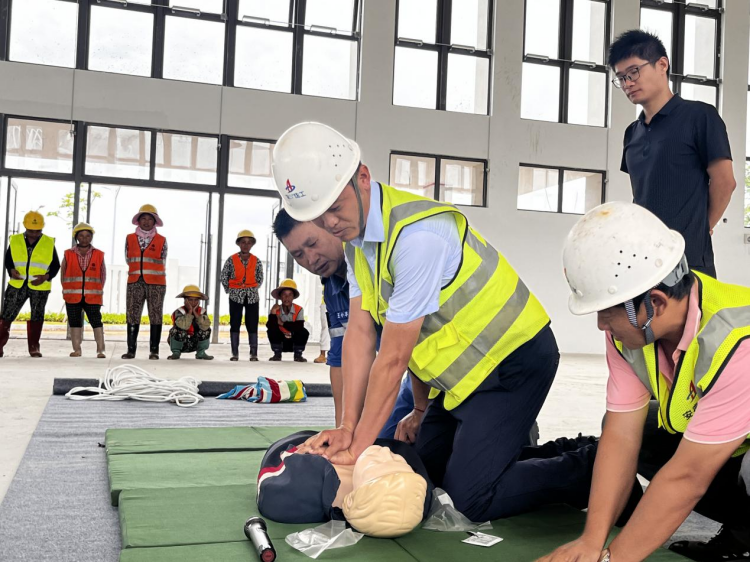 上午9時許,演練正式開始。項目一“工人”被塌落的操作架架體及建筑材料砸傷,腿部骨折并伴隨大量出血。接到事故報告后,項目部立即啟動應急預案、進行救援處置,信息報送、救助聯絡、人員疏散、安保警戒、醫(yī)療救護,各小組在總指揮的統(tǒng)一調度下迅速展開救援行動,分工明確、配合默契、有條不紊,最終成功救助傷者,維護了項目現場的穩(wěn)定?;顒犹貏e邀請了海藍應急救援服務中心救助隊參與,過程中,海藍應急救援服務中心專家針對簡易擔架制作、心肺復蘇技能進行了演示,并組織項目人員親身體驗。整場演練共歷時40多分鐘,順利完成了計劃內容,達到了“以演促練”的預期效果,不僅強化了全體參與人員對安全工作的認識,使大家熟悉了處置突發(fā)事件的流程,學習了自救互救知識和技能,還提升了項目部應急救援水平,能夠最大程度地減少或避免意外傷害事故造成的損失,有利于扎實推進后續(xù)安全生產工作。
