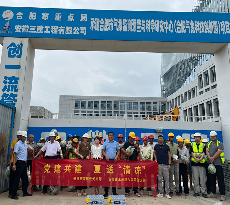 八公司黨支部聯(lián)合安徽拓盛建設(shè)黨支部深入合肥市氣象監(jiān)測(cè)預(yù)警與科學(xué)研究中心項(xiàng)目開展“送清涼”慰問活動(dòng)