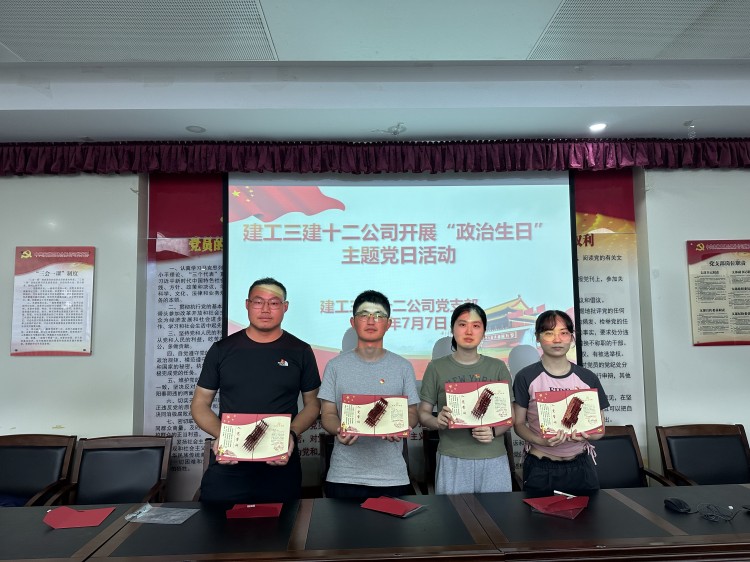 7月7日,為慶祝中國(guó)共產(chǎn)黨成立102周年,深入開(kāi)展學(xué)習(xí)貫徹習(xí)近平新時(shí)代中國(guó)特色社會(huì)主義思想主題教育,十二公司黨支部組織全體黨員開(kāi)展“過(guò)政治生日,強(qiáng)初心使命”主題黨日活動(dòng)。