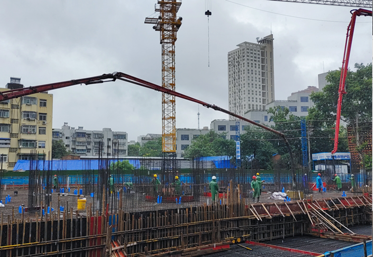 項(xiàng)目部科學(xué)安排,搶抓施工進(jìn)度,克服施工限制。為保證項(xiàng)目進(jìn)度,在地上結(jié)構(gòu)施工階段,項(xiàng)目部合理組織勞動(dòng)力資源,專人負(fù)責(zé)單層近500次周轉(zhuǎn)材料的吊運(yùn)。由于緊靠居民區(qū),項(xiàng)目施工場地受限,所以積極與周邊居民協(xié)調(diào)溝通,避開居民休息時(shí)段施工。8月以來,項(xiàng)目平均每8天完成一層,共完成3層近5100㎡的非標(biāo)準(zhǔn)層結(jié)構(gòu)的施工。