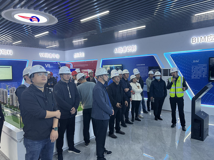 觀摩團(tuán)一行實(shí)地參觀了項(xiàng)目質(zhì)量、安全管控措施、樣板展示、施工工藝優(yōu)化和智慧工地應(yīng)用情況。
