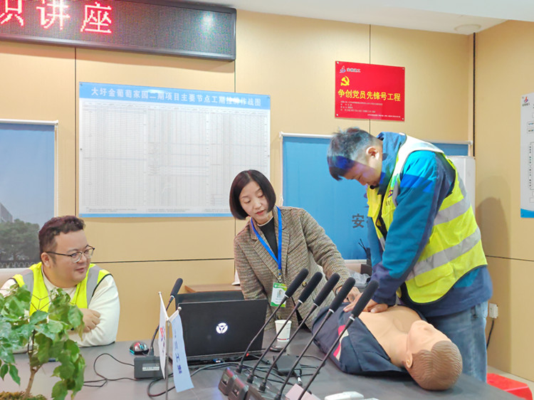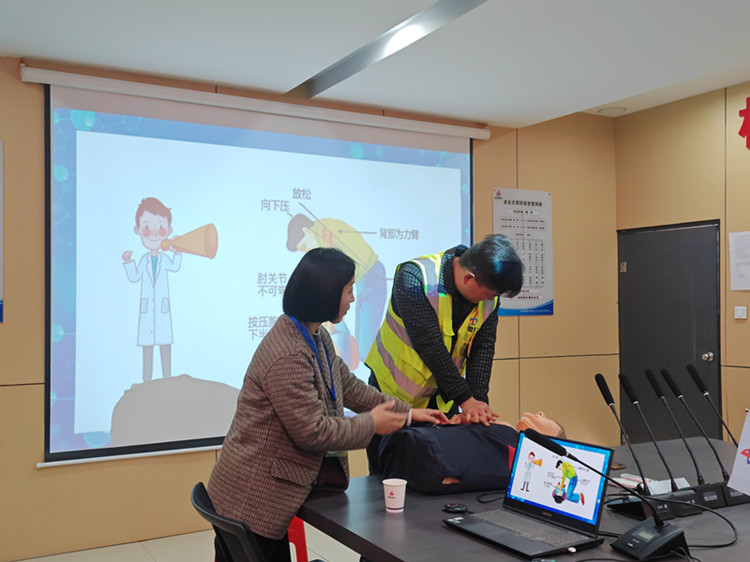 培訓內(nèi)容主要包括常規(guī)急救技能(心肺復蘇術(shù))和常見疾病的預防及改善。課堂上,老師為大家科普了需要進行心肺復蘇的情形、心肺復蘇具體操作步驟及心肺復蘇的有效判斷標準,并現(xiàn)場邀請項目管理人員進行了實操演練。