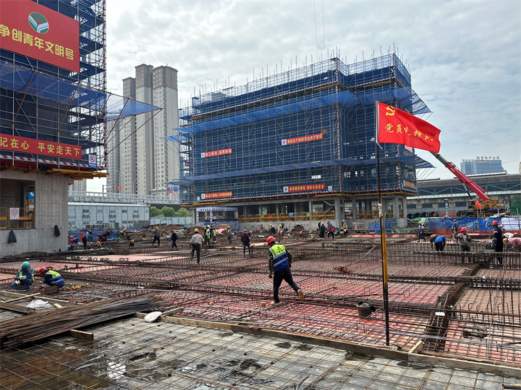 項目迅速組織召開勞動競賽工作小組會議,充分發(fā)揮“兩個作用”匯聚生產(chǎn)動能。項目黨員充分發(fā)揮先鋒模范作用,沖鋒在前,引領項目全體職工統(tǒng)一思想、團結(jié)奮斗,咬緊關(guān)鍵工期節(jié)點不松口。面對鋼筋原材不足難題,項目發(fā)揮釘釘子精神,加強溝通對接,加快推進鋼筋原材進場工作,同時積極同聯(lián)合體單位協(xié)商臨時借調(diào)鋼材。針對連續(xù)陰雨天氣影響施工進度問題,項目青年突擊隊集思廣益,多次研討確保節(jié)點工期任務的解決方案,同時對人防口部墻板集中部位采用架設固定式遮雨棚及移動式遮雨棚措施,給工人提供安全的雨天施工作業(yè)條件。