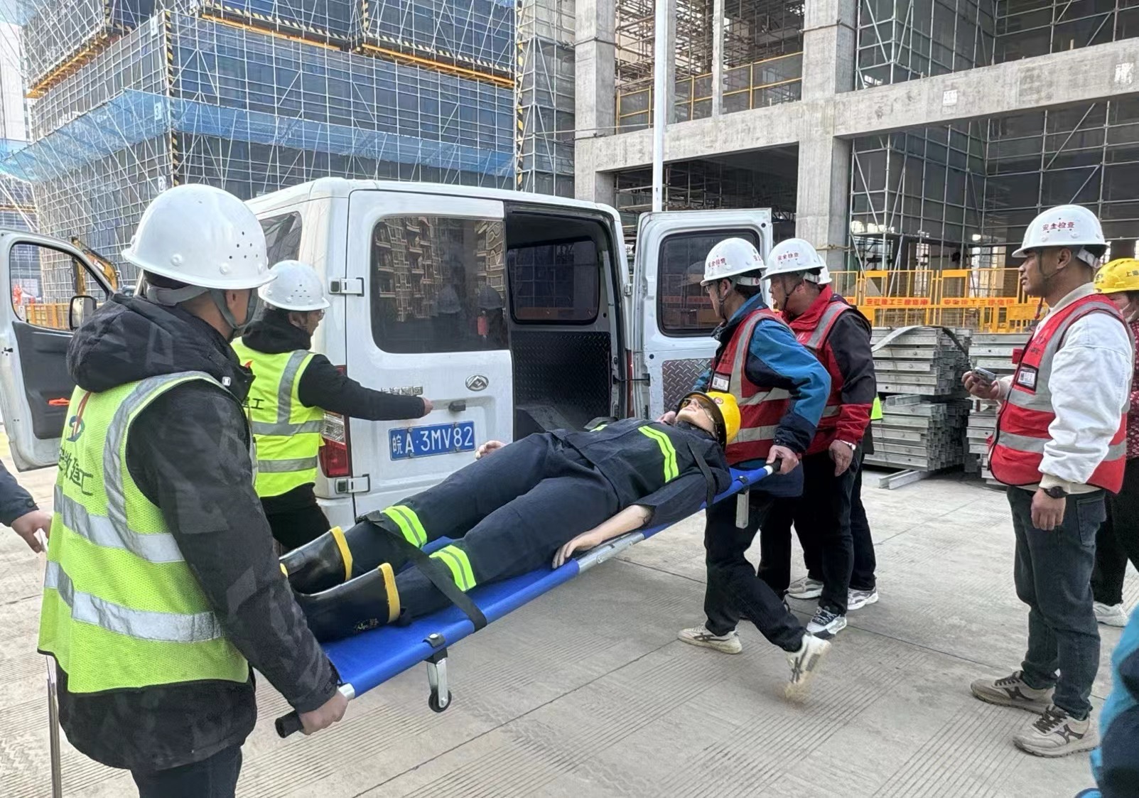 演練前,現(xiàn)場(chǎng)人員被分為警戒組、疏散組、救援組,在了解演練流程與安全事項(xiàng)后,演練正式開始,警戒組迅速行動(dòng),分工明確,快速在事故周邊拉起警戒線,設(shè)置警示標(biāo)識(shí),禁止無關(guān)人員靠近,為救援現(xiàn)場(chǎng)營(yíng)造安全區(qū)域;同時(shí),救援組攜帶擔(dān)架、急救箱等專業(yè)設(shè)備進(jìn)入事發(fā)現(xiàn)場(chǎng),熟練檢查“傷者”傷勢(shì)并進(jìn)行急救,隨后將“傷者”平穩(wěn)送上救護(hù)車。整場(chǎng)演練,各小組分工明確、協(xié)同配合,以最短的時(shí)間高效地完成了本次演練任務(wù),充分展現(xiàn)了團(tuán)隊(duì)協(xié)作的高效性,有效檢驗(yàn)了應(yīng)急預(yù)案的可行性,提升了管理人員的應(yīng)急處置能力,更讓全體人員深刻認(rèn)識(shí)到嚴(yán)抓施工安全管理的重要性。
