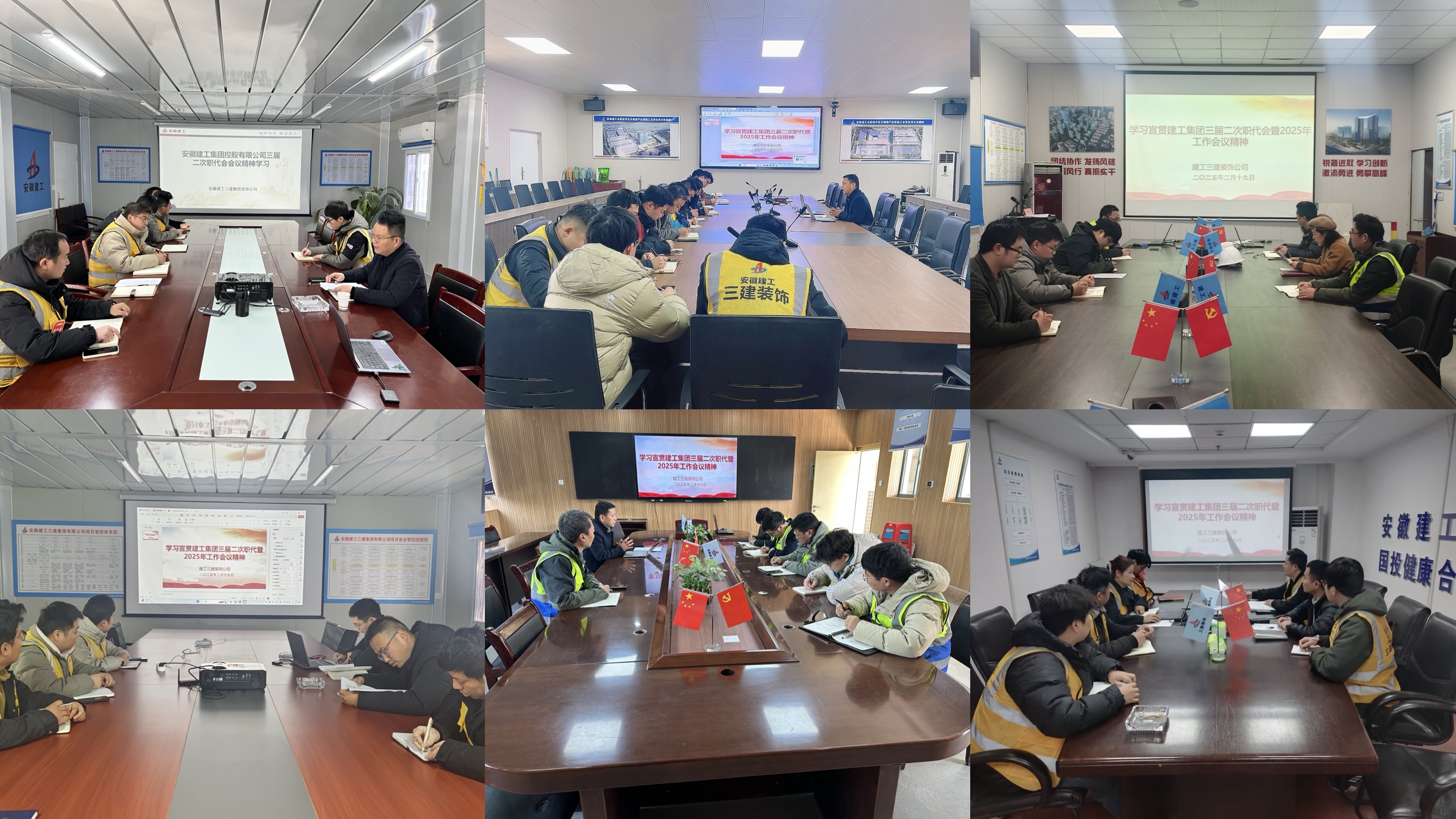 2月9日至12日,安徽建工集團控股有限公司三屆二次職工代表大會暨2025年工作會議勝利召開。會后,建工三建所屬各單位通過多種形式,傳達學習集團黨委書記、董事長楊善斌作的題為《改革創(chuàng)新 擔當作為 強化企業(yè)管理 加快轉(zhuǎn)型升級 奮力推進安徽建工集團高質(zhì)量發(fā)展大發(fā)展》講話精神和集團黨委委員、總會計師王淑德作的《集團年度工作報告》精神,迅速掀起學習宣貫熱潮,確保會議精神傳達到每一位職工,進一步統(tǒng)一思想、凝心聚力,為推動集團轉(zhuǎn)型發(fā)展、高質(zhì)量發(fā)展、大發(fā)展貢獻力量。