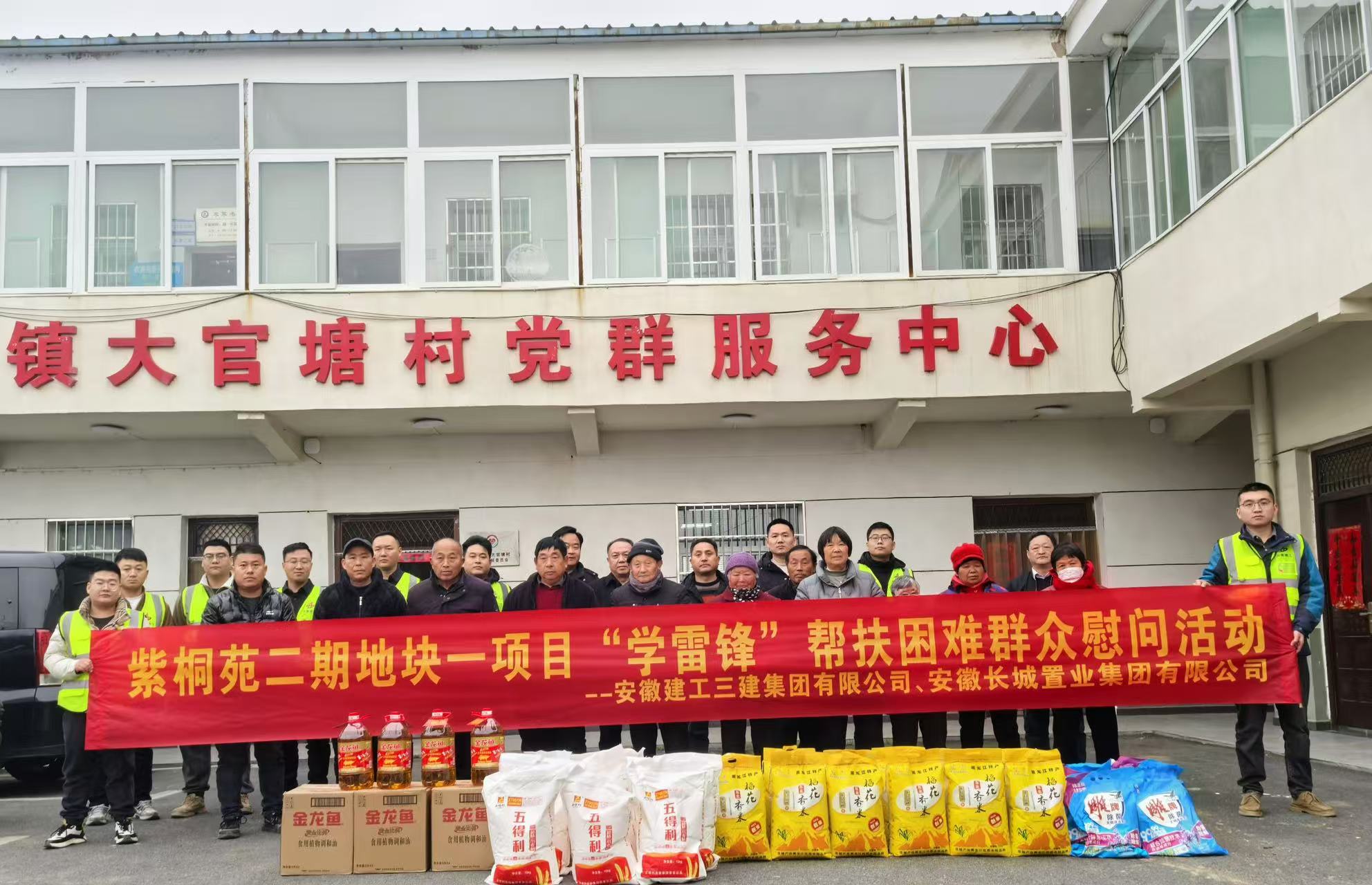 十分公司紫桐苑二期地塊一項目黨支部聯(lián)合雙墩鎮(zhèn)人民政府村鎮(zhèn)規(guī)劃建設(shè)辦、安徽長城置業(yè)集團有限公司組織項目管理人員前往長豐縣雙墩鎮(zhèn)大官塘村委會開展“學雷鋒”幫扶困難群眾慰問活動,為困難群眾送去了米、油、面等生活物資,并與他們親切交談,幫助人民群眾解決生活困難,鼓勵他們保持樂觀心態(tài)。