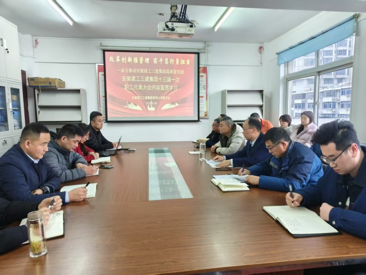 近日,安徽建工集團(tuán)控股有限公司三屆二次職工代表大會暨2025年工作會議和安徽建工三建集團(tuán)有限公司十三屆一次職代會暨2025年工作會議勝利召開。會后,建工三建所屬各單位迅速掀起學(xué)習(xí)宣貫熱潮,確保兩級職代會精神傳達(dá)到每一位職工,進(jìn)一步統(tǒng)一思想、凝心聚力,推動公司高質(zhì)量發(fā)展,為集團(tuán)轉(zhuǎn)型發(fā)展、高質(zhì)量發(fā)展、大發(fā)展貢獻(xiàn)力量。