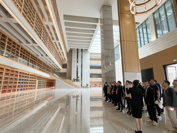 活動現(xiàn)場,黨員干部跟隨講解員的腳步,詳細(xì)了解國家版本館“一總?cè)帧笨傮w布局和西安分館概況。在讀者服務(wù)中心,認(rèn)真聆聽版本館設(shè)計理念和建筑布局情況,沉浸式體驗漢唐風(fēng)韻;在序廳,參觀了氣勢恢宏的四層通頂書墻,感受厚重的文化氛圍;在《賡續(xù)文脈 踔厲前行——中華文化經(jīng)典版本展(西部篇)》和《楮墨遺珍 萬里同風(fēng)——絲綢之路版本展》兩個展廳,了解中華文明發(fā)展脈絡(luò)和絲綢之路文化交流的重要意義。尤其是通過“延安精神 紅色血脈”展區(qū),重溫了革命文獻(xiàn)中的紅色記憶。