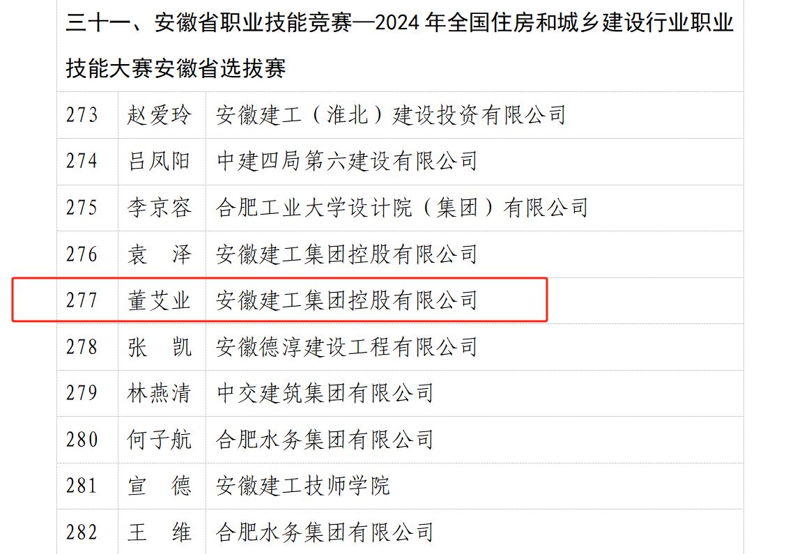 近日,公司鋼筋工董艾業(yè)代表安徽建工集團(tuán)參加2024年全國住房和城鄉(xiāng)建設(shè)行業(yè)職業(yè)技能大賽安徽省選拔賽,并憑借扎實(shí)的專業(yè)功底與精湛技藝,榮獲 “安徽省技術(shù)能手” 稱號(hào)。該榮譽(yù)不僅是董艾業(yè)個(gè)人職業(yè)生涯的高光時(shí)刻,更是公司在產(chǎn)業(yè)工人技能培育領(lǐng)域長期耕耘的有力見證。