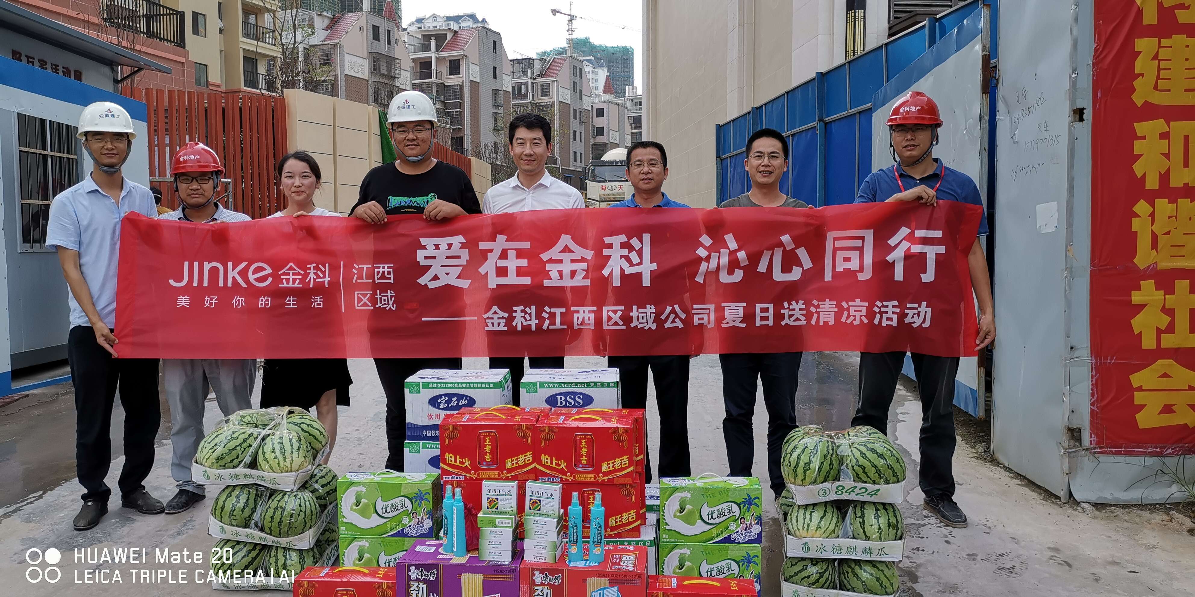 盛夏季節(jié),高溫酷暑,贛州地區(qū),悶熱潮濕。7月12日上午,金科地產南昌公司副總經理、贛州公司總經理章玉華一行深入項目部為一線廣大員工帶來了涼茶、牛奶、礦泉水、方便面、西瓜、花露水等防暑降溫用品,并送來了一份誠摯的關懷。