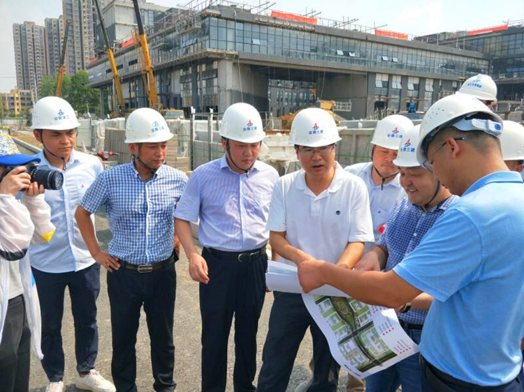 葛銳一行、冒著高溫,深入施工現(xiàn)場(chǎng),先后參觀了1#樓展示廳、2#科研樓等施工現(xiàn)場(chǎng),對(duì)施工現(xiàn)場(chǎng)安全生產(chǎn)、文明施工管理給予了肯定,并對(duì)高溫環(huán)境依然堅(jiān)持奮戰(zhàn)在施工一線的管理人員及建筑工人們表示了親切的慰問。