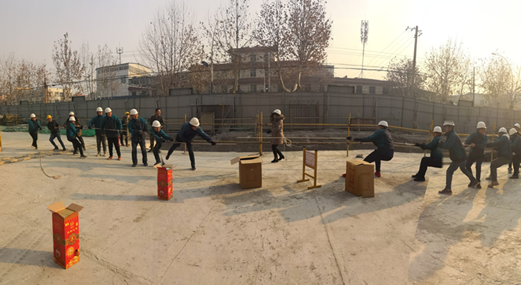封頂儀式正逢元旦佳節(jié),項(xiàng)目全體人員還舉行了拔河比賽和跳繩比賽,場面熱鬧非凡,把封頂儀式推向高潮。