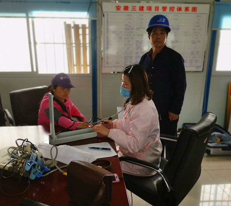 體檢項目包括常規(guī)身體檢查、測血壓及心電圖等。體檢現(xiàn)場,醫(yī)務(wù)人員為每位工人進行了全面的細(xì)致檢查,使項目一線工人進一步的了解了自身的身體狀況,經(jīng)過一個下午的忙碌,此次活動得以圓滿完成。