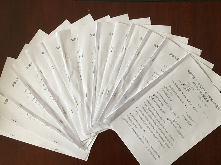 黨課結束后,為了檢驗和鞏固學習成果,黨支部還結合《新黨章》和黨課學習內容組織了全體黨員進行新黨章知識閉卷測試。