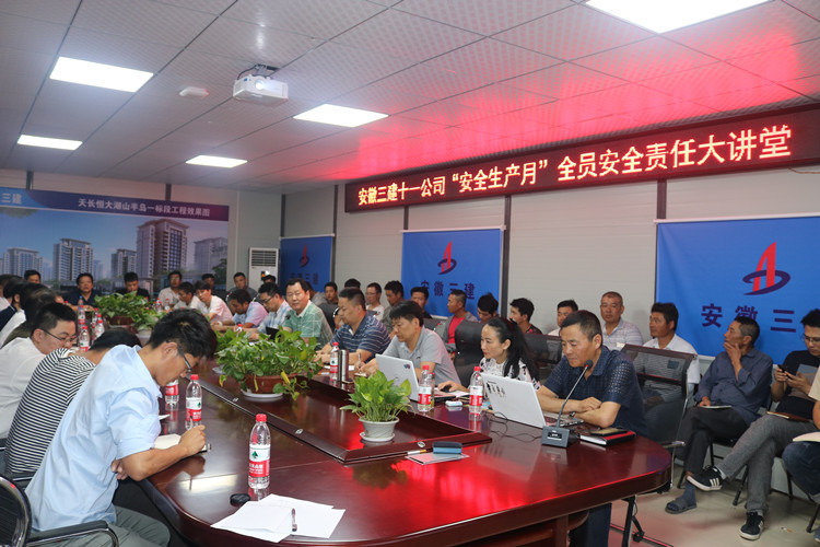 為積極響應(yīng)建工集團、三建公司關(guān)于安全生產(chǎn)工作的號召,強化安全意識,提升安全素質(zhì)。2019年6月16日晚7點,十一公司組織領(lǐng)導(dǎo)班子成員、項目經(jīng)理、項目管理人員共計40余人在天長恒大項目會議室開展“安全責任大講堂”活動。
