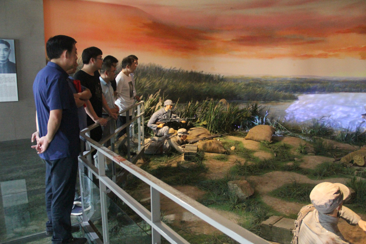進(jìn)入紀(jì)念館中,首先印入眼簾的便是一幅巨大的新四軍浮雕壁畫,大家對場館內(nèi)五個(gè)展廳依次進(jìn)行了參觀學(xué)習(xí)。廳內(nèi)大量的歷史圖片、遺留實(shí)物、解說文字等以不同形式再現(xiàn)了當(dāng)年新四軍將士在巖寺的光輝歷程和英勇抗戰(zhàn)事跡。