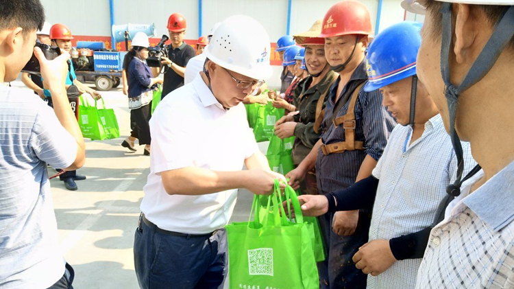 劉斌一行深入施工現(xiàn)場,親手為項(xiàng)目管理人員和施工人員們送上清涼油、毛巾、水杯、綠茶等防暑降溫物品,對烈日下仍堅(jiān)守在一線崗位的建設(shè)者們進(jìn)行了親切慰問。劉斌詳細(xì)詢問了現(xiàn)場人員的工作生活情況,囑咐大家注意避峰作業(yè),工作中做好防暑降溫措施。他還要求項(xiàng)目部人員提高安全生產(chǎn)意識,加強(qiáng)對防暑降溫常識和中暑急救知識的宣傳教育工作,確保職工的身體健康,為安全生產(chǎn)的順利進(jìn)行提供保障。