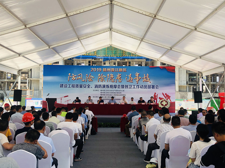 蓉江新區(qū)主題建設工程質(zhì)量安全、消防演練觀摩會暨創(chuàng)衛(wèi)工作動員部署會在贛州毅德商貿(mào)物流園項目舉行