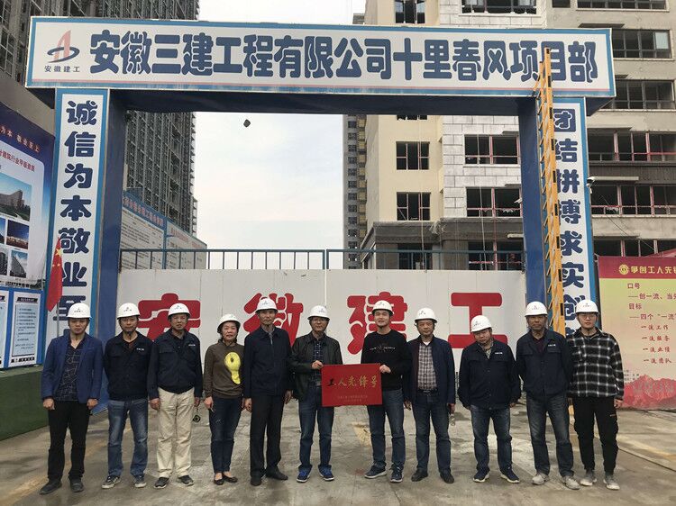 2019年11月6日下午,安徽三建公司工會主席、紀(jì)委書記李家保一行前往九公司肥東碧桂園十里春風(fēng)項(xiàng)目,對該項(xiàng)目申報的安徽三建“工人先鋒號”進(jìn)行驗(yàn)評,并予以授牌。