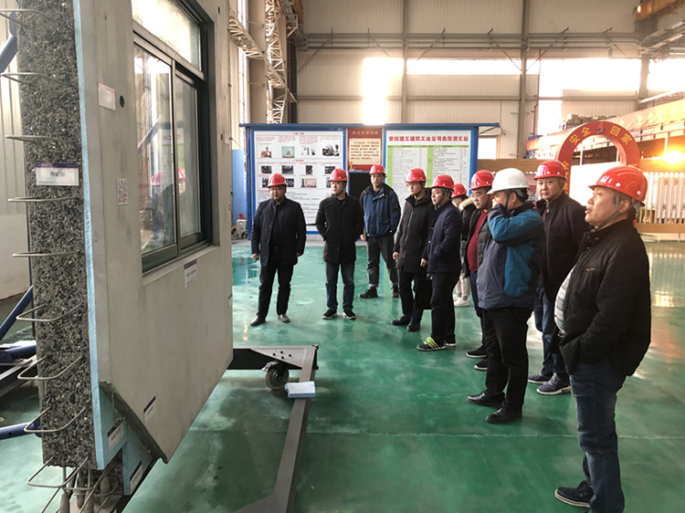 隨后,孫俊中一行來到安徽建工建筑工業(yè)有限公司,參觀了產(chǎn)業(yè)化構(gòu)件生產(chǎn)線,詳細(xì)了解了建筑產(chǎn)業(yè)化PC構(gòu)件的生產(chǎn)工藝流程以及一體化施工的有關(guān)環(huán)節(jié)。孫俊中一行人還在工業(yè)公司會(huì)議室和有關(guān)人員開展了座談交流,王興明介紹了建筑產(chǎn)業(yè)化施工過程中的有關(guān)措施及管理,并詳細(xì)講解了安徽三建裝配式建筑生產(chǎn)施工情況。