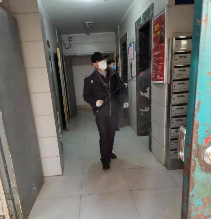建欣物業(yè)公司共有100多名職工,服務(wù)8個(gè)小區(qū),有5000多戶,約20000余人口,覆蓋面積達(dá)40萬平方。在當(dāng)前嚴(yán)峻的疫情形勢(shì)下,物業(yè)公司領(lǐng)導(dǎo)帶頭,全體職工堅(jiān)守崗位,積極行動(dòng),在做好自身防護(hù)的同時(shí),從封閉管理、體溫監(jiān)測(cè)、消殺、宣傳等多方面嚴(yán)格落實(shí)社區(qū)和上級(jí)要求的各項(xiàng)防疫措施。自26日全面開始防控工作以來,物業(yè)公司日發(fā)口罩100余個(gè),配備紅外測(cè)溫儀15支,日測(cè)人員體溫150余人;噴灑“84”消毒液200余斤,酒精40瓶,并配合轄區(qū)街道社區(qū)防疫工作對(duì)外來人員上門排查,勸導(dǎo)居民加強(qiáng)自我保護(hù)意識(shí),做好防疫宣傳工作。