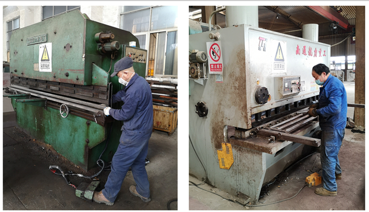 圖為輕鋼龍骨公司二車間、三車間工人師傅加班加點(diǎn)加工爬架所需材料