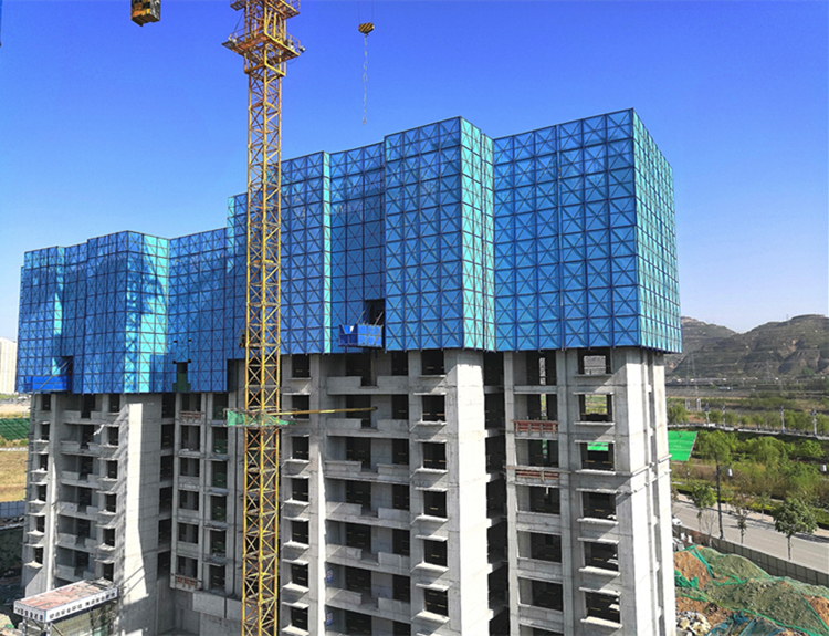 西北公司彬州世紀(jì)城宗地一地塊項目的2棟高層全部采用全鋼型附著式升降腳手架。較普通架體而言,該架體安全性能搞、操作人員少,方便快捷,爬升一層僅需1小時,架體在組裝完成后不需要材料堆碼場地,整個建筑外立面清爽干凈,顯著提高了項目的文明施工,并在使用過程中檢查維護工作量較小、用時少,從而更大的提高了項目的生產(chǎn)效率。項目部表示在后續(xù)開工的樓體建設(shè)中將繼續(xù)采用該爬架。