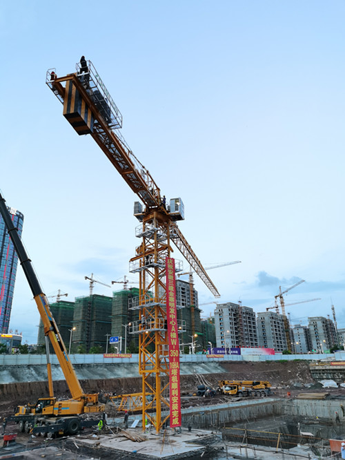 利器在手 公司最大塔機(jī)W350在金寨明發(fā)中心超高層項(xiàng)目順利安裝就位