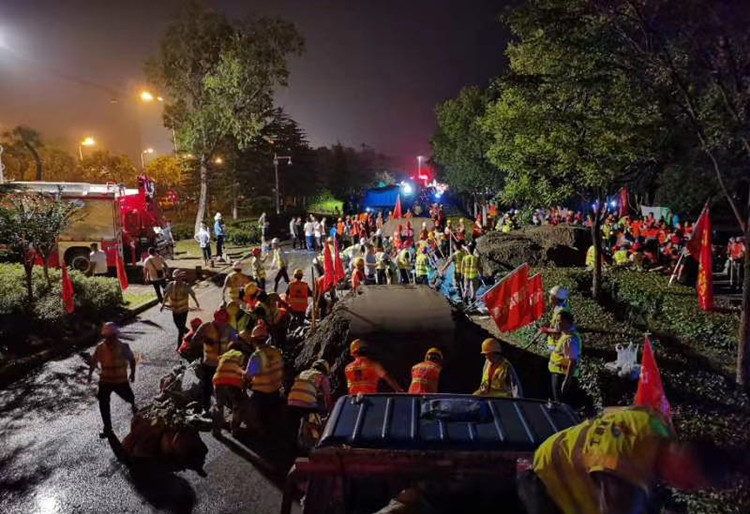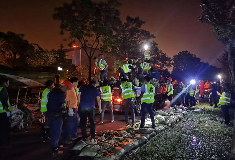 項(xiàng)目黨支部全體黨員及項(xiàng)目管理人員帶領(lǐng)現(xiàn)場(chǎng)工人共計(jì)50余人趕往環(huán)湖北路開展抗洪搶險(xiǎn)工作。大家克服種種困難,挑燈夜戰(zhàn),全力奮戰(zhàn)在大堤上,至21日凌晨3時(shí)20分,在地勢(shì)較低的環(huán)湖北路筑起1米多高,300多米長(zhǎng)的沙袋墻,有效化解了巢湖水漫淹環(huán)湖大道的威脅。