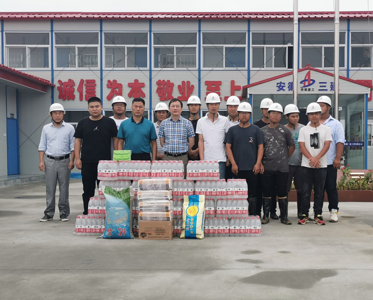 2020年8月20日,頂著炎炎烈日,臨泉廬陽現(xiàn)代產(chǎn)業(yè)園管委會前往安徽三建承建的臨泉欣榮農(nóng)民返鄉(xiāng)創(chuàng)新創(chuàng)業(yè)基地項目開展”夏季送清涼“活動。