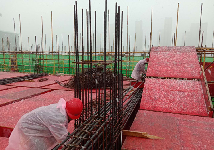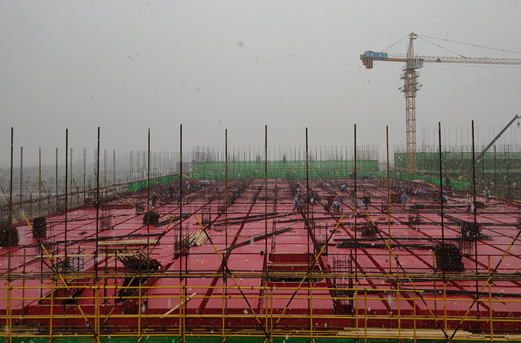 11月23日上午,阜陽臨泉縣首場大雪如期而至,室外細雨夾著白雪、地區(qū)氣溫低至零下1-2度,但臨泉欣榮農民返鄉(xiāng)創(chuàng)新創(chuàng)業(yè)基地項目現場卻一派熱火朝天大干搶工場面,項目一線職工奮戰(zhàn)在雪中,為全面完成全年目標任務奮力拼搏。