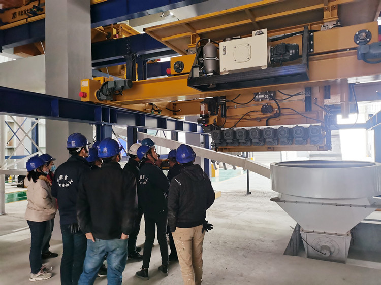 安全教育組現(xiàn)場指導工人熟悉生產(chǎn)設(shè)備