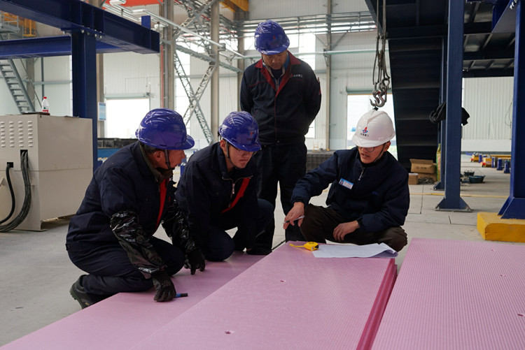 質(zhì)檢檢查組帶領(lǐng)新質(zhì)檢員熟悉圖紙質(zhì)檢模具安裝