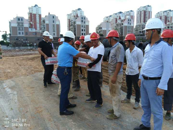 作為江西公司進駐贛州市場的首個項目,從6月27日進場施工伊始,項目面臨著贛州區(qū)域人工、材料、機械價格暴漲,資源緊缺,13#樓圖紙頻繁變更,圖紙進度緩慢等重重困難。這些都是對這個90后為主的年輕項目團隊的考驗。為確保完成施工節(jié)點,提高項目團隊的凝聚力和戰(zhàn)斗力,分公司及項目部多措并舉全面做好防暑降溫工作。一面調(diào)整作息時間,避開中午高溫時段,實行“抓早晚、歇中間”的避高溫措施;一面班子帶頭送清涼進一線,項目部準備充足的礦泉水、藿香正氣水、十滴水、清涼油等防暑降溫用品,為施工人員配備草帽、防曬服等;同時在生活、后勤等方面采取人性化服務,為職工生活區(qū)安裝空調(diào),定時對職工體檢,搭設茶水臺和遮陽棚。
