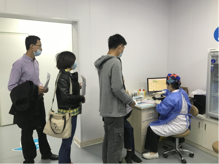 接種人員到達(dá)醫(yī)院后填寫《新冠疫苗接種知情同意書(shū)》,并掃描醫(yī)院專屬二維碼登記建檔,經(jīng)簡(jiǎn)易體檢查看是否符合接種要求,確認(rèn)沒(méi)問(wèn)題后再進(jìn)行疫苗接種。在接種完成后留觀區(qū)觀察30分鐘,無(wú)異常反應(yīng)后再由專車送回項(xiàng)目。