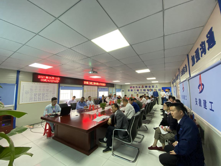 在項(xiàng)目部會(huì)議室,成忠一行人聽取了項(xiàng)目PPT匯報(bào),查閱了相關(guān)資料。檢查組認(rèn)為安徽三建公司將《保障農(nóng)民工工資支付條例》落到了實(shí)處,切實(shí)維護(hù)了農(nóng)民工合法權(quán)益。