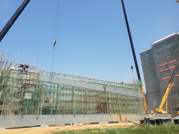 2021年5月24日,安徽三建公司北??叼B(yǎng)學(xué)院項(xiàng)目成功完成禮堂鋼結(jié)構(gòu)屋面鋼梁吊裝工作。此次吊裝的鋼梁為北海市所有在建項(xiàng)目中鋼結(jié)構(gòu)跨度最大,重量最重的構(gòu)件。