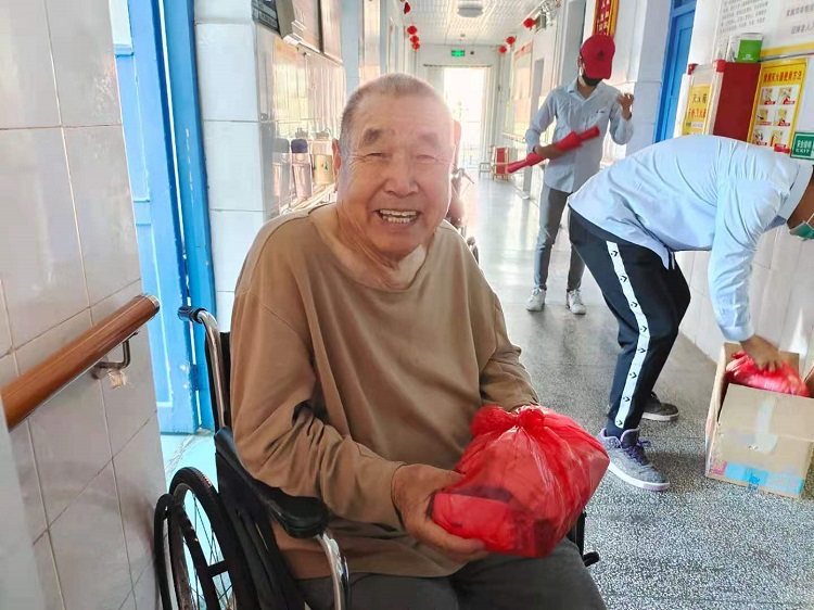活動當天,項目黨支部黨員以及入黨積極分子剛走進敬老院就開始忙活起來,大家一起陪伴老人們做操、唱歌、聊家常并給老人們送上慰問品,項目部帶來的關懷溫暖著老人們的內心,他們個個臉上都洋溢起幸福的笑容。