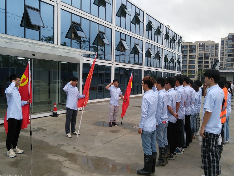為團(tuán)結(jié)帶領(lǐng)廣大團(tuán)員青年在項(xiàng)目建設(shè)中發(fā)揮生力軍和突擊隊(duì)的作用,推動(dòng)項(xiàng)目建設(shè)目標(biāo)順利完成,合肥一中東校區(qū)項(xiàng)目根據(jù)工程建設(shè)需要和建隊(duì)標(biāo)準(zhǔn)成立了“青年突擊隊(duì)”,并于7月26日舉行授旗儀式。突擊隊(duì)由25人組成,技術(shù)負(fù)責(zé)張偉擔(dān)任隊(duì)長(zhǎng),平均年齡僅24歲。